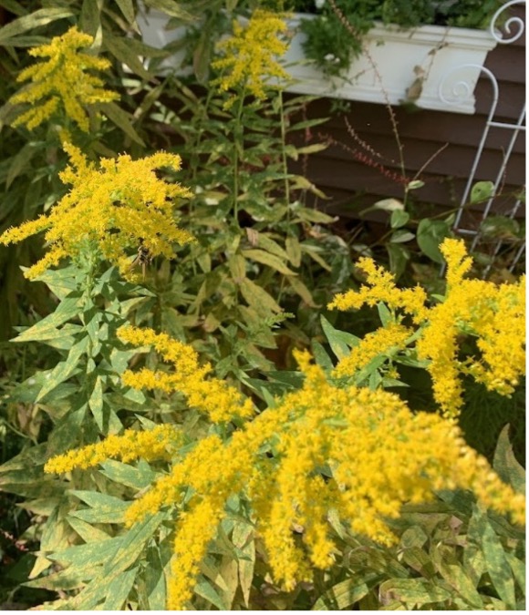 In late summer to early fall, they are followed by golden rod. – which tends to overwhelm all ditches and wild spaces with its exuberance. Few people know how to welcome them in their limited garden spaces. I allow it to flourish in one part of my border, easily accessible, so I can enjoy watching the bees feasting on their pollen. Make sure to dig out the creeping roots around the clump because they will spread around