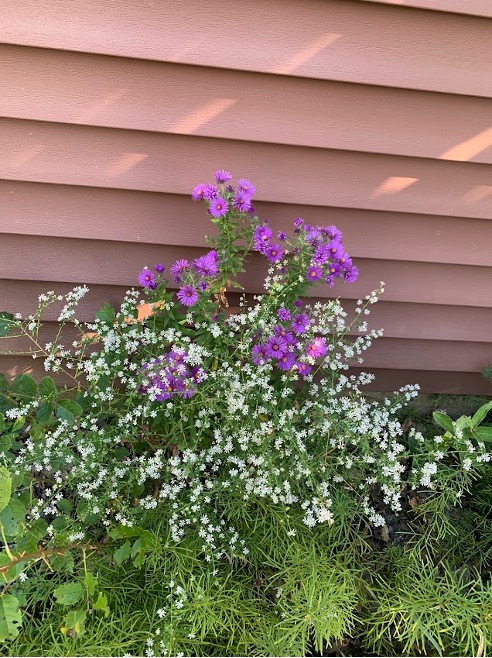 The season ends with the asters. They are varied and plentiful. The way I manage them is to limit their clumps, still allowing them to flourish for the pollinators. To keep them in a manageable size, I Chelsea chop the tall ones, usually in late May. That way, I can give them a star role in my borders in fall, without being overwhelmed by them.